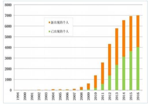 石墨烯專利新發(fā)明人時(shí)序分布