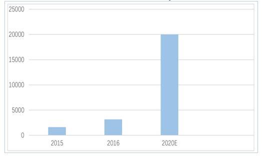 全球石墨烯市場巨大,中國將成最大消費(fèi)國。目前全球石墨烯年產(chǎn)能已達(dá)到百噸級(jí),業(yè)內(nèi)預(yù)計(jì)未來五年到十年,石墨烯年產(chǎn)能將達(dá)到千噸級(jí)。鋰電大數(shù)據(jù)統(tǒng)計(jì)顯示,2015年,全球石墨烯市場規(guī)模約為 453 萬美元,石墨烯正處于大規(guī)?;跋?,預(yù)計(jì)到 2020年市場規(guī)??蛇_(dá)到 3.85 億美元,2025 年石墨烯規(guī)模將達(dá) 21.03 億美元。中國石墨烯產(chǎn)業(yè)聯(lián)盟統(tǒng)計(jì)顯示,中國石墨烯生產(chǎn)企業(yè)已經(jīng)從 2015 年的300 多家增長到 2016 年的 400多家,石墨烯產(chǎn)業(yè)規(guī)模從 2015 年的 1630 萬美元增長到2016 年的3842萬美元,發(fā)展態(tài)勢喜人。隨著石墨烯量產(chǎn)的解決和石墨烯下游的拓展,產(chǎn)業(yè)聯(lián)盟預(yù)計(jì)中國 2020 年石墨烯市場規(guī)模將達(dá)到 2 億美元,占世界市場規(guī)模超過一半,成為全球最大的石墨烯消費(fèi)國家。