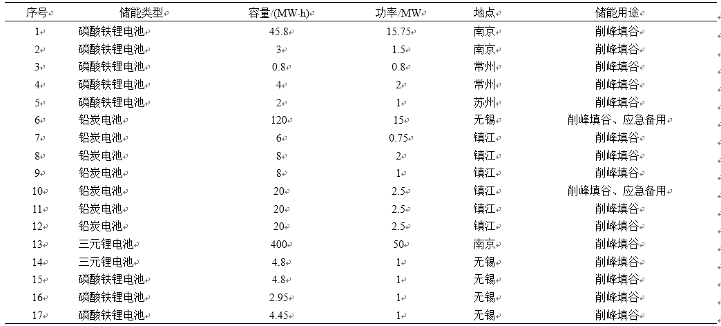 表1 江蘇省2017年用戶(hù)側(cè)儲(chǔ)能規(guī)劃建設(shè)情況(容量1 MW以上)