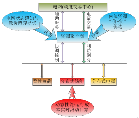 圖2 分布式儲(chǔ)能匯聚(資源聚合商)參與電網(wǎng)調(diào)度交易示意圖