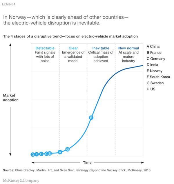 挪威的電動(dòng)汽車(chē)已經(jīng)達(dá)到了臨界質(zhì)量,挪威明顯領(lǐng)先于其他國(guó)家——電動(dòng)汽車(chē)的中斷是不可避免的。