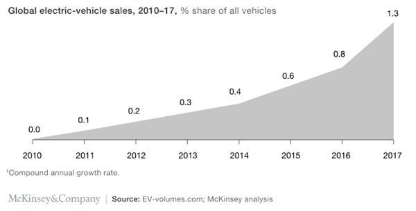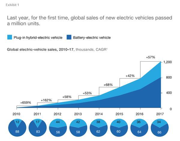 電動(dòng)汽車(chē)在一些地區(qū)和國(guó)家取得了有意義的進(jìn)展,因?yàn)樗鼈冊(cè)?017年突破了100萬(wàn)輛的里程碑。