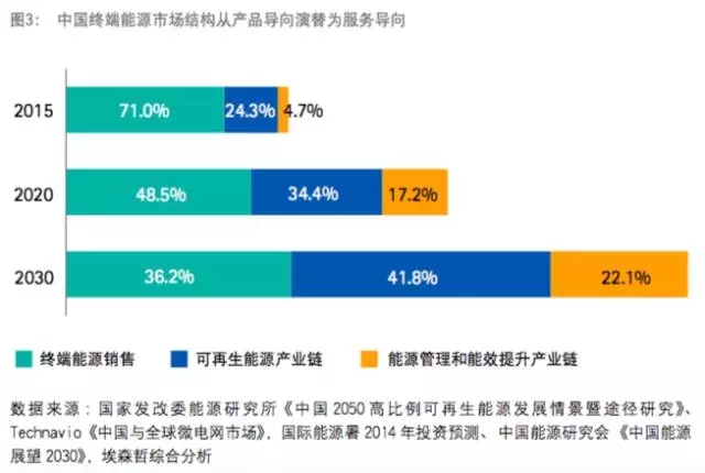 而在埃森哲此前的預(yù)測中,到2020年中國能源互聯(lián)網(wǎng)的總市場規(guī)模將超過9400億美元。未來三年中最具顛覆性的市場變化在于,能源電力行業(yè)的價(jià)值增長點(diǎn)從傳統(tǒng)產(chǎn)品銷售轉(zhuǎn)向以數(shù)字化為基礎(chǔ)的能源服務(wù)。其次,隨著能源消費(fèi)者用能習(xí)慣的轉(zhuǎn)變和區(qū)域性、分布式可再生能源解決方案的成熟,傳統(tǒng)的大跨度集中供能方式也將受到分布式能源就地產(chǎn)消的沖擊。