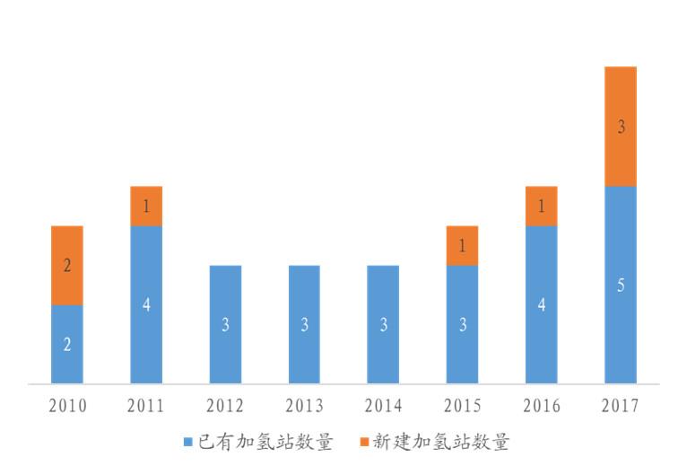 截至2018年5月,中國(guó)在運(yùn)營(yíng)的加氫站數(shù)量已經(jīng)達(dá)到12個(gè),較2017年底又增加了4個(gè)。盡管目前已有另外19個(gè)加氫站正在規(guī)劃建設(shè)中,但目前的加氫站密度仍然不足以支撐燃料電池車(chē)的商業(yè)化推廣。高昂的建站成本及運(yùn)營(yíng)成本、國(guó)產(chǎn)核心設(shè)備缺失使得加氫站數(shù)量難以在短期內(nèi)大幅提升。