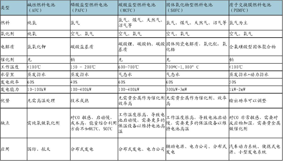 各類(lèi)燃料電池指標(biāo)及應(yīng)用領(lǐng)域概述