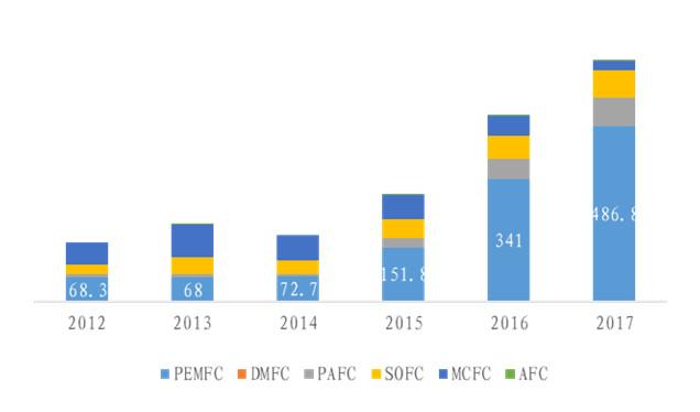 不同類(lèi)型燃料電池出貨量