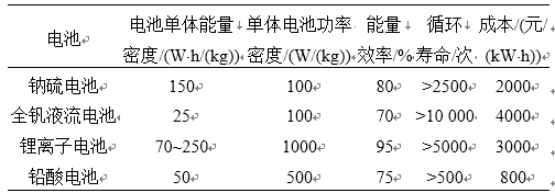 從表1中可以看出,在實際工程應(yīng)用當(dāng)中,鋰離子電池、鈉硫電池、液流電池等均可作為電池儲能系統(tǒng)的組成單元。它們因其不同的安全性、能量密度、循環(huán)壽命和成本等(如表2所示)具有不同的應(yīng)用場景。