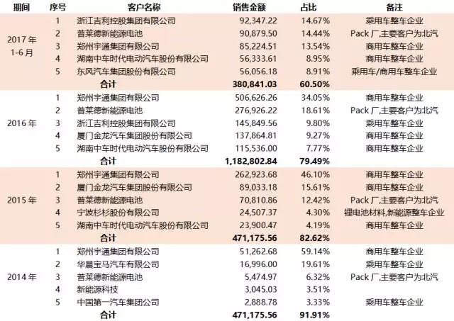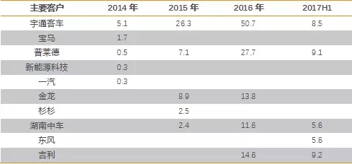 圖17:2014年~2017年1~6月寧德時(shí)代前五大客戶(單位:萬元)
