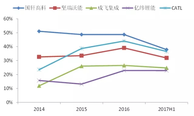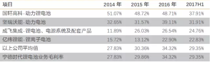 圖10:上市公司動(dòng)力鋰電業(yè)務(wù)毛利率對(duì)比