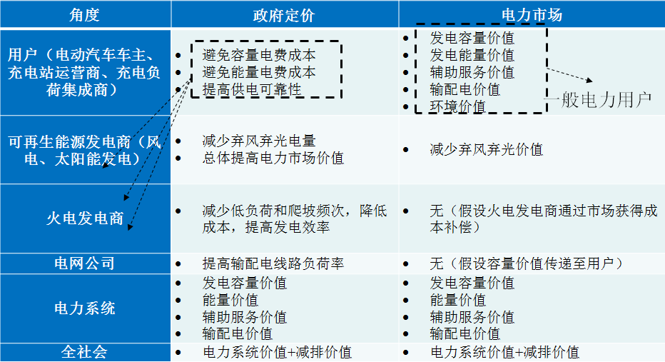 剛才說(shuō)的就是電動(dòng)汽車(chē)與電網(wǎng)的互動(dòng)潛力,下面來(lái)分析對(duì)整個(gè)電力系統(tǒng)帶來(lái)的經(jīng)濟(jì)價(jià)值到底有多大,其實(shí)電動(dòng)汽車(chē)可以為整個(gè)系統(tǒng)發(fā)輸配各個(gè)環(huán)節(jié)產(chǎn)生不同的價(jià)值。