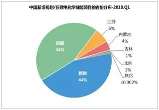 2018年一季度,由于中國新增投運電化學儲能項目的裝機規(guī)模較小,因此這里僅對新增規(guī)劃/在建項目進行分析。