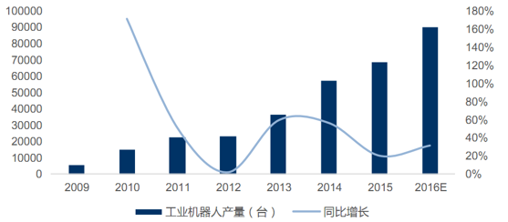 出于提高鋰離子電池一致性、提升產(chǎn)品合格率、降低勞動(dòng)力成本的需要,自動(dòng)化成為鋰離子電池制造行業(yè)重要發(fā)展方向。在“智能制造”、“工業(yè)4.0”的大背景下,鋰離子電池傳統(tǒng)的手工制造工藝難以滿足鋰離子電池市場(chǎng)日益嚴(yán)苛的需求,取而代之的將是全智能自動(dòng)化生產(chǎn)線。根據(jù)國(guó)際機(jī)器人聯(lián)合會(huì)(IFR)的報(bào)告,我國(guó)工業(yè)機(jī)器人產(chǎn)量不斷增加,2009-2016的年復(fù)合增長(zhǎng)率高達(dá)49%,標(biāo)志著我國(guó)自動(dòng)化水平穩(wěn)步提升。機(jī)器人自動(dòng)化企業(yè)也在不斷拓展對(duì)鋰離子電池制造行業(yè)的布局,已有不少公司在生產(chǎn)線上使用機(jī)器人。時(shí)代高科的董事長(zhǎng)田漢溶表示:“機(jī)器人在鋰電設(shè)備行業(yè)的應(yīng)用才剛剛開始”。