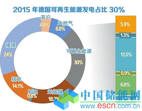 2010年~2015年,德國(guó)可再生能源發(fā)電量占比平均每年增長(zhǎng)3.1%。目前傳統(tǒng)發(fā)電供應(yīng)只占66%,若按照之前的增長(zhǎng)速度,德國(guó)大約只需20年就可達(dá)到100%使用可再生能源發(fā)電。然而想要實(shí)現(xiàn)這個(gè)愿望,還有很多問(wèn)題需要解決,特別是電力儲(chǔ)存和電網(wǎng)構(gòu)建問(wèn)題。此外,要完全放棄傳統(tǒng)電力系統(tǒng)構(gòu)架,德國(guó)目前還沒(méi)有任何人敢去承擔(dān)所帶來(lái)的金融風(fēng)險(xiǎn)。