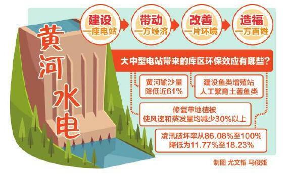 裝機(jī)1083萬千瓦的黃河干流16座水電站不但為我國提供著強(qiáng)大的綠色能源,還為“三江之源”“中華水塔”構(gòu)筑了天然屏障。隨著黃河上游梯級(jí)電站的陸續(xù)建成,龍青河段增加了600平方公里的濕地面積。同時(shí),電站梯級(jí)水庫的相繼蓄水也為庫區(qū)周邊地區(qū)帶來了降雨、濕度、風(fēng)頻等“庫區(qū)效應(yīng)”,使周邊生態(tài)環(huán)境得到明顯改善。據(jù)了解,龍羊峽水電站每年能為寧蒙灌區(qū)增加有效供水17億立方米,使灌溉保證率由31%提高到86%,每年為下游省市增加有效供水7億立方米,有力地支持了沿黃河地區(qū)經(jīng)濟(jì)社會(huì)發(fā)展。