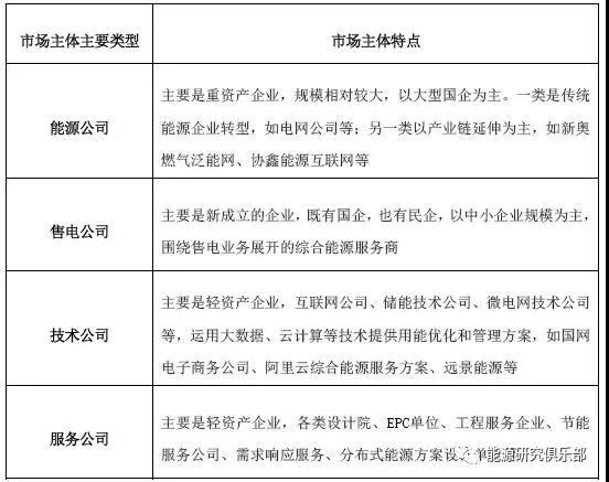 表4 綜合能源服務(wù)主要市場參與主體