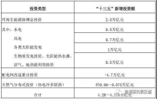 從投資的角度看,綜合能源服務(wù)所涉及的要素中僅可再生能源、配電網(wǎng)改造、天然氣分布式三個領(lǐng)域“十三五”期間的新增投資規(guī)模,預(yù)計約4.26~4.275萬億元,具體見表3。