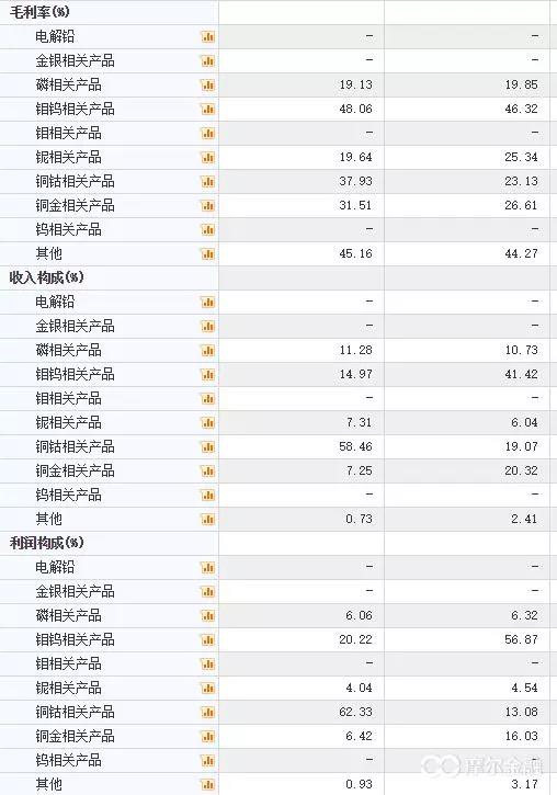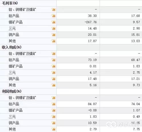 圖為17年中報(bào)與16年年報(bào)對比,兩家公司在2017年銅鈷產(chǎn)品收入占比顯著提高,毛利率顯著提高。