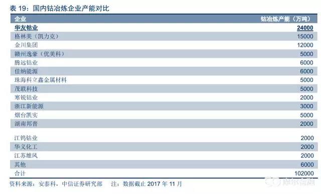 華友鈷業(yè):公司目前鈷產(chǎn)品產(chǎn)能(折合鈷金屬量)達(dá)2.4萬噸,居全球第一。