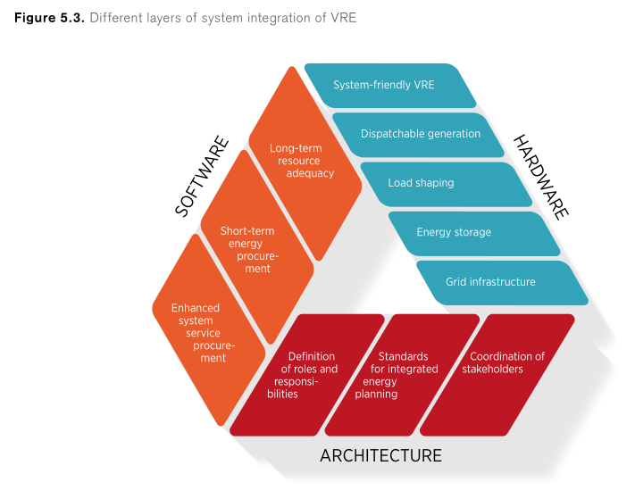 可再生能源對(duì)電力系統(tǒng)的影響日益深廣,如下圖可分階段來(lái)討論,以幫助識(shí)別與可再生能源集成相關(guān)的主要挑戰(zhàn),并選擇適當(dāng)?shù)拇胧﹣?lái)增強(qiáng)靈活性。這種簡(jiǎn)單的分類還對(duì)可能的挑戰(zhàn)進(jìn)行分類,并為任務(wù)的優(yōu)先級(jí)提供了一個(gè)有用的框架: