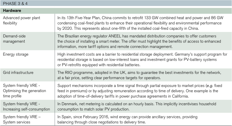 負(fù)責(zé)能源部門規(guī)劃的決策者應(yīng)評(píng)估最具成本效益的解決方案組合,以處理多種可再生能源高份額系統(tǒng)中能源生產(chǎn)的易變性。這些可供選擇的方案涵蓋電網(wǎng)基礎(chǔ)設(shè)施(燃料、電力、局域供熱網(wǎng))、固定的長(zhǎng)期和短期儲(chǔ)能、多能互補(bǔ)(電動(dòng)車輛、合成燃料、電加熱等)和能效措施。政策應(yīng)根據(jù)技術(shù)的實(shí)際環(huán)境效益和成本對(duì)其進(jìn)行評(píng)估。成本效益高的多能互補(bǔ)機(jī)制要求更好地監(jiān)測(cè)和控制電力的使用地點(diǎn)、時(shí)間和方式。管理一個(gè)多種可再生能源高度互相滲透的復(fù)雜的系統(tǒng),數(shù)字化是必不可少的。為了促進(jìn)數(shù)字化的整體智能充電,監(jiān)管機(jī)構(gòu)和政策制定者必須讓業(yè)務(wù)模式,以便為大量用戶提供基于時(shí)間的價(jià)格信號(hào)、控制信號(hào)以及數(shù)據(jù)分析等內(nèi)容。