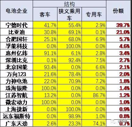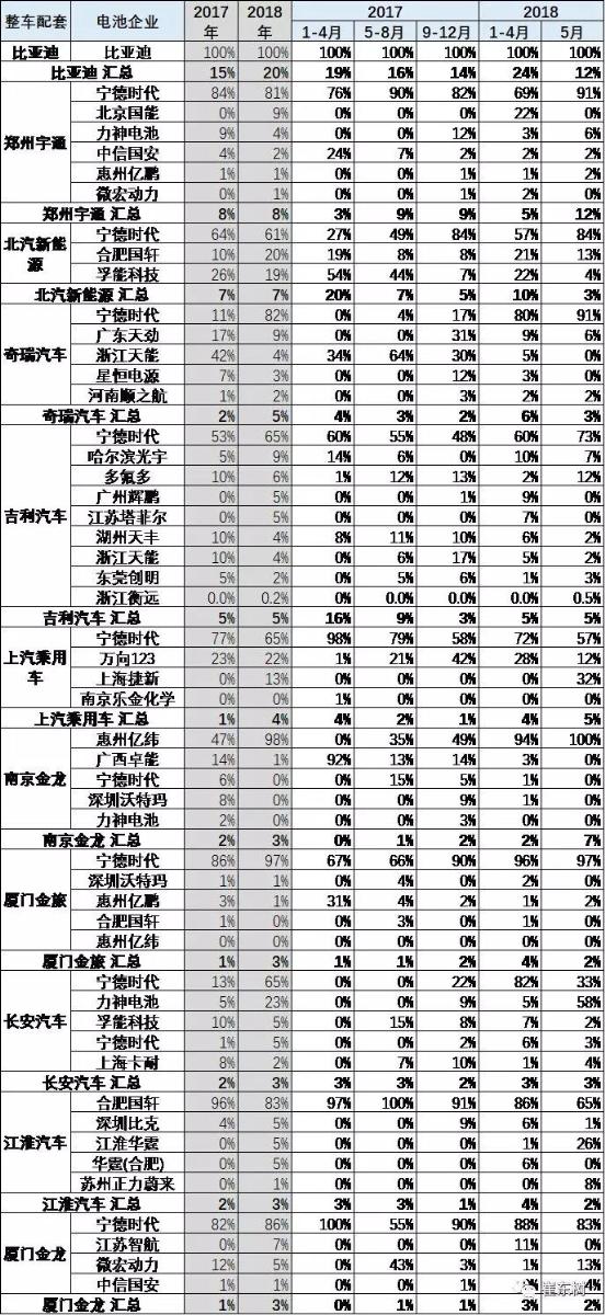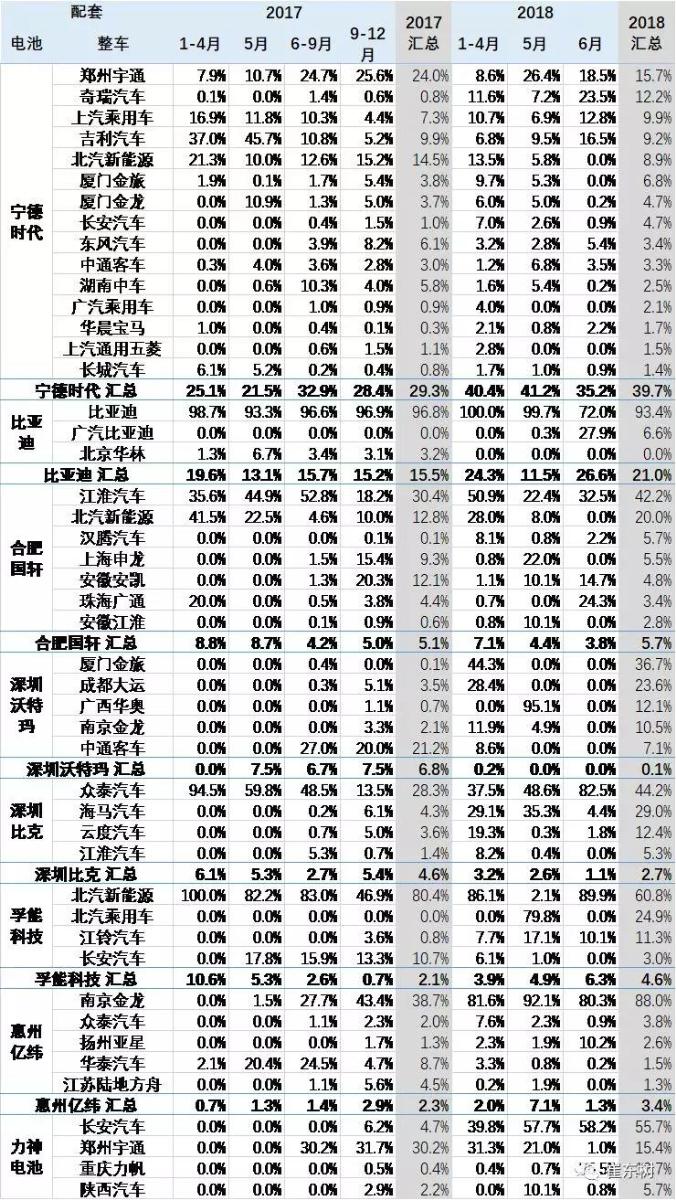 從18年1-6月的數(shù)據(jù)來(lái)看電池廠家的整車配套有明顯的變化,尤其是以寧德時(shí)代為代表,目前的配套總體是乘車,尤其是以北汽能源,奇瑞汽車和長(zhǎng)安汽車為代表,著力開(kāi)發(fā)了長(zhǎng)安和奇瑞兩大企業(yè)。而與鄭州宇通等客車企業(yè)的占比大幅下降。
