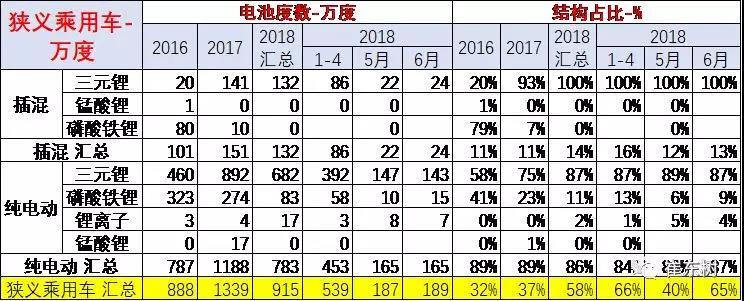 18年1-6月新能源車電池用量1575萬(wàn)度,較17年1-6月的574萬(wàn)度增加1000萬(wàn)度。18年6月的電池用量環(huán)比5月下降不大,但結(jié)構(gòu)上分化也較明顯。從車輛細(xì)分類別來(lái)看,18年6月乘用車電池裝機(jī)電量約189萬(wàn)度,同比去年的95萬(wàn)度增長(zhǎng)94萬(wàn)度;客車電池裝機(jī)電量81萬(wàn)度,同比下降4萬(wàn)度;專用車電池裝機(jī)電量20萬(wàn)度,同比增長(zhǎng)4萬(wàn)度,客車變化力度較強(qiáng)。