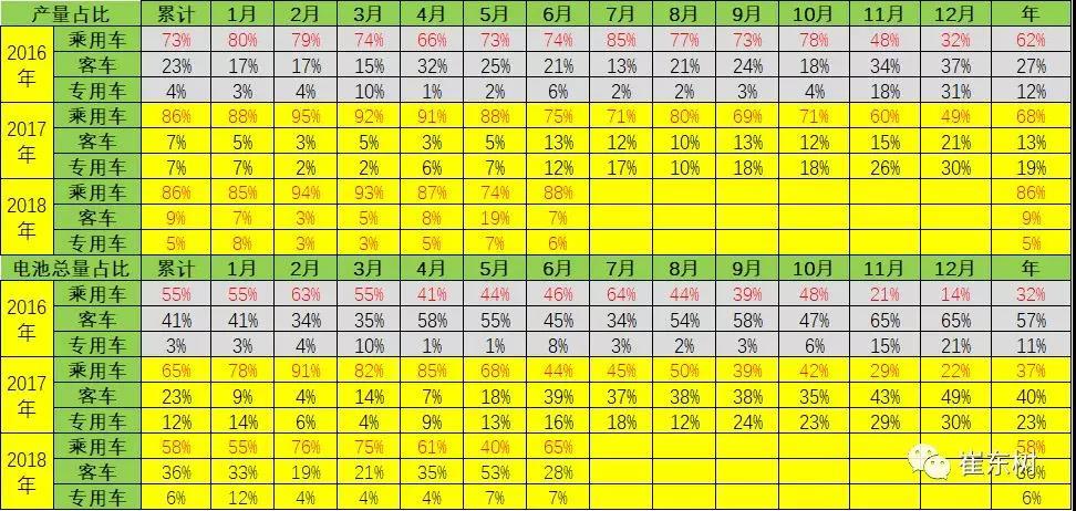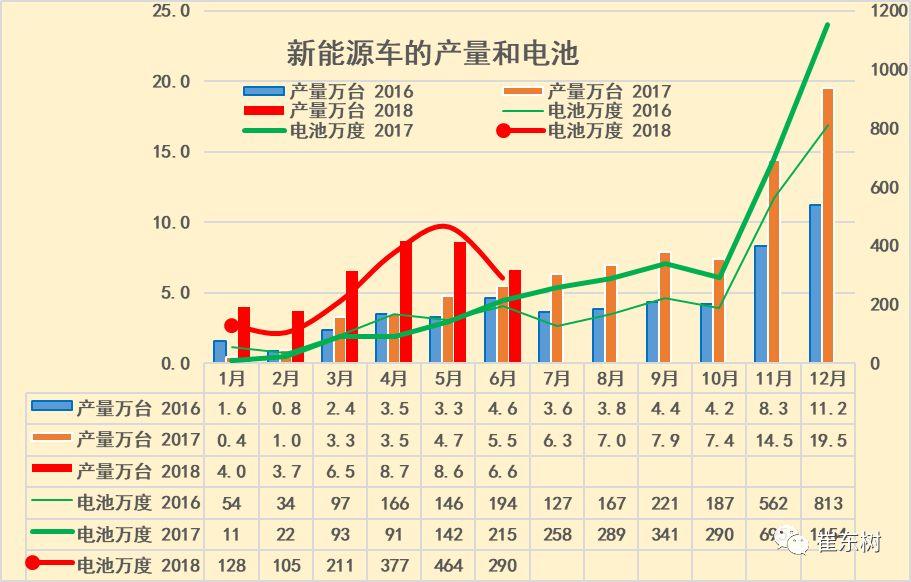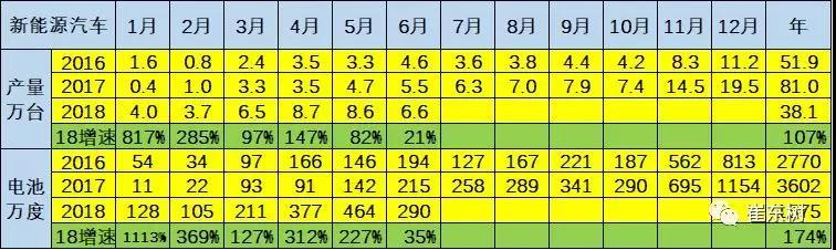 根據(jù)崔東樹(shù)個(gè)人測(cè)算,按照汽車生產(chǎn)合格證數(shù)據(jù):2018年6月新能源汽車產(chǎn)量6.6萬(wàn)臺(tái),增長(zhǎng)21%;電池裝機(jī)總電量約290萬(wàn)度,同比增長(zhǎng)35%。由于3-5月的年初搶裝特征使新能源汽車產(chǎn)量爆發(fā)增長(zhǎng)。6月的新補(bǔ)貼政策起步期的產(chǎn)量增長(zhǎng)仍是較好。