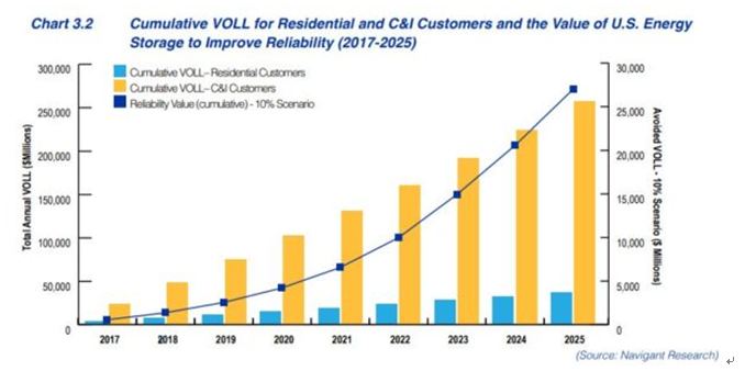 安裝35GW的儲能系統(tǒng)的成本為487億美元。如果儲能將可靠性提高10%,那么將節(jié)省290億美元,幾乎是儲能硬件成本的60%。
