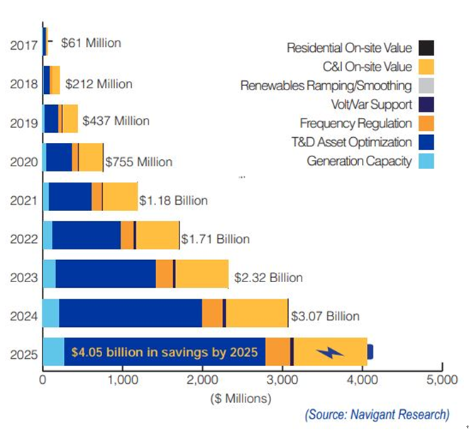 技術(shù)演變的最大驅(qū)動力通常是成本。而根據(jù)Navigant Research的調(diào)查報告,儲能從住宅層面到公用事業(yè)規(guī)模發(fā)電、輸電和配電,將會節(jié)省超過40億美元的成本。