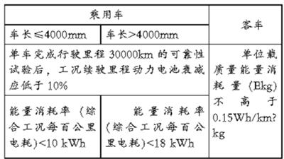 表二新建純電動汽車整車企業(yè)投資項目產(chǎn)品主要技術(shù)要求