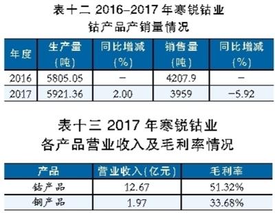 然而,2017年其鈷產(chǎn)品的銷售量是下滑的(見表十二);顯然,其鈷產(chǎn)品收入的大幅增長是受益于鈷價(jià)大幅增長的結(jié)果。
