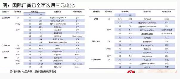 從國(guó)際上現(xiàn)在車廠他們選用車型的占比來(lái)看,除了在美國(guó)還有用磷酸鐵鋰的部分小眾車型外 ,現(xiàn)在日本、歐美的廠商推出的新能源汽車車型基本上是用了三元材料。