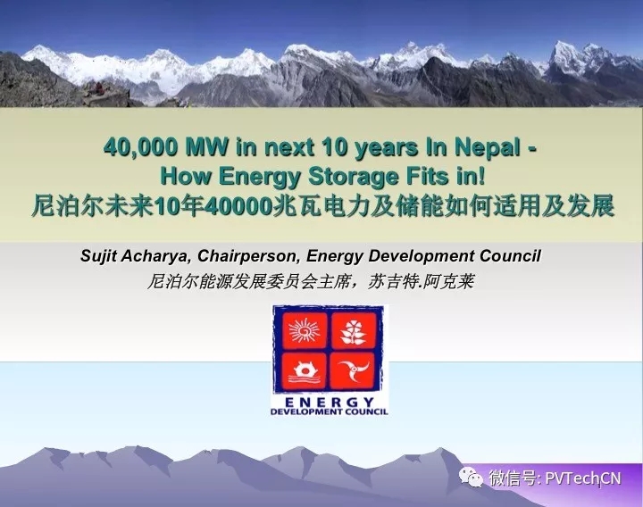 中國儲能網(wǎng)訊:12月8日,尼泊爾能源發(fā)展委員會主席蘇吉特.阿克萊(Sujit Acharya)在深圳Solar plus國際高峰論壇做了《尼泊爾未來10年40000兆瓦電力及儲能如何適用及發(fā)展》的主題演講報告。