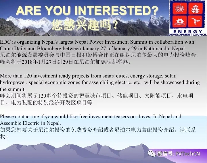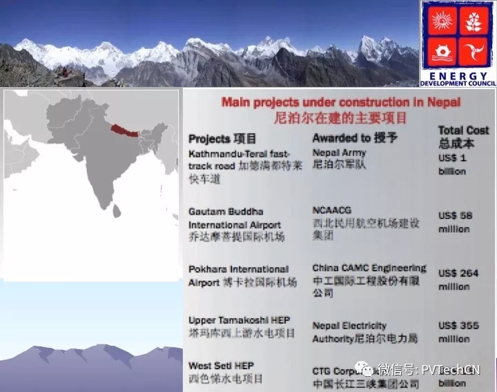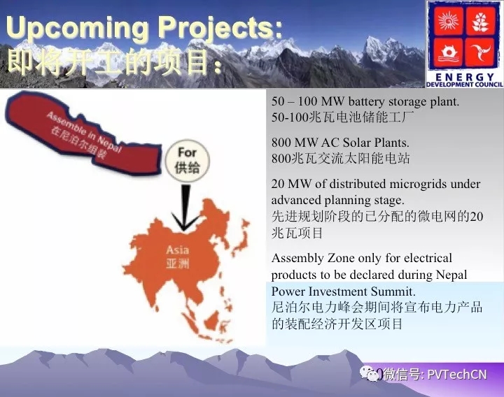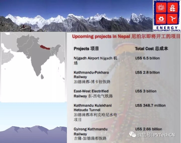 據(jù)悉,尼泊爾即將開工的項目包括:50-100MW電池儲能工廠、800MW交流太陽能電站、先進規(guī)劃階段的已分配的20MW微電網(wǎng)項目。