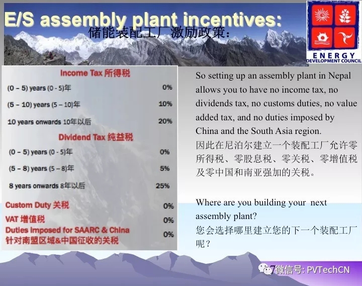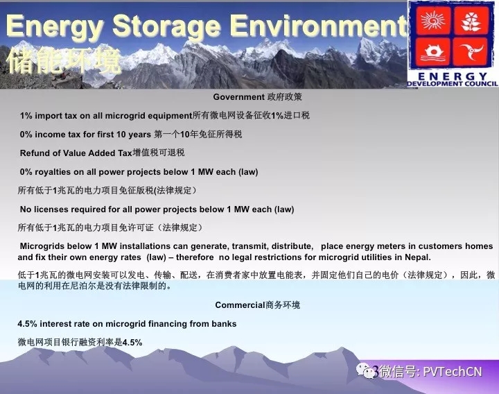 為了發(fā)展儲能,尼泊爾政府發(fā)布了相關(guān)的支持政策,包括所有微電網(wǎng)設(shè)備征收1%進口稅,第一個10年免征得所有稅,增值稅可退稅。