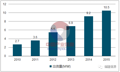 2010-2015年中國燃料電池行業(yè)出貨量走勢