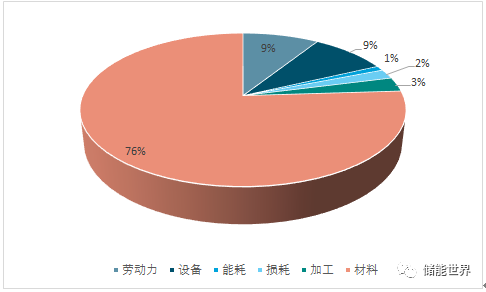 不同生產(chǎn)規(guī)模下的電池成本及拆分