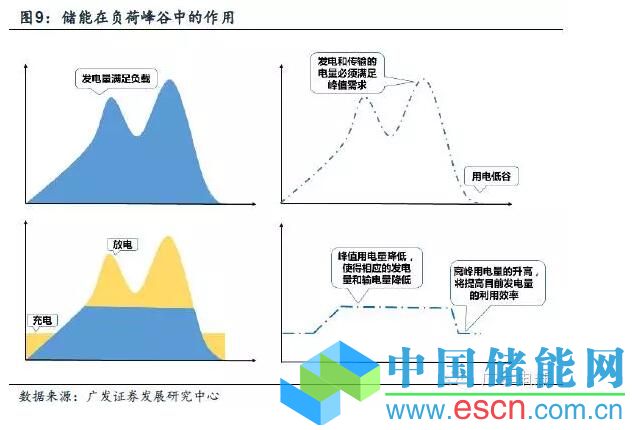 儲(chǔ)能設(shè)備能夠在負(fù)荷低谷的時(shí)候,儲(chǔ)存發(fā)出的多余電量,并存放在發(fā)電側(cè)和輸配電側(cè)。當(dāng)符合峰值時(shí),可以將負(fù)荷谷底存儲(chǔ)的多余電量發(fā)送給電網(wǎng),滿足峰值負(fù)荷的需求。這樣,以后發(fā)電公司和電網(wǎng)公司的設(shè)計(jì)規(guī)劃都不需要按照最大功率值進(jìn)行設(shè)計(jì),減少不必要的投資,提高設(shè)備利用率。