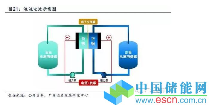 利用正負(fù)極電解液分開,各自循環(huán)的一種高性能蓄電池。電池的功率和能量是不相關(guān)的,儲(chǔ)存的能量取決于儲(chǔ)存罐的大小,因而可以儲(chǔ)存長達(dá)數(shù)小時(shí)至數(shù)天的能量,容量可達(dá)MW級。