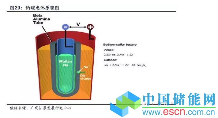 種以金屬鈉為負(fù)極、硫?yàn)檎龢O、陶瓷管為電解質(zhì)隔膜的二次電池。循環(huán)周期可達(dá)到4500次,放電時(shí)間6-7小時(shí),周期往返效率75%,能量密度高,響應(yīng)時(shí)間快。目前在日本、德國、法國、美國等地已建有200多處此類儲(chǔ)能電站,主要用于負(fù)荷調(diào)平,移峰和改善電能質(zhì)量。