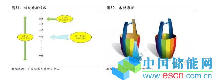 傳統(tǒng)BMS控制系統(tǒng)輸出的高電壓,是通過多級電池串聯(lián)而成。如木桶原理一樣,單個(gè)蓄電池組的容量基本上受組內(nèi)容量最小的電池決定。因此需要所有組內(nèi)單體電池的電壓、內(nèi)阻、容量等指標(biāo)越一致越好。同理,電池組組成的電池供電系統(tǒng),也是受最小容量的電池組決定
