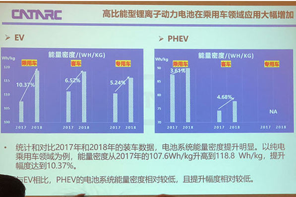 在2018年的裝車數(shù)據(jù)中,電池系統(tǒng)的能量密度較2017年有明顯提升,純電動(dòng)乘用車能量密度從107.6Wh/kg升高到118.8Wh/kg,提升幅度達(dá)到10.37%,并且受到單體能量密度的快速提升以及成組技術(shù)進(jìn)步的影響,2015-2018年電池系統(tǒng)的能量密度的提升幅度越來(lái)越大。