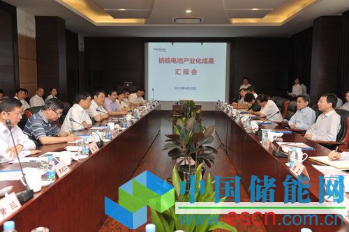 與會人員參觀了鈉硫儲能公司展示廳、產(chǎn)品制備現(xiàn)場,并聽取了鈉硫公司總經(jīng)理茅雁對于產(chǎn)業(yè)化階段性成果的專題工作匯報(bào)。上海電氣鈉硫儲能技術(shù)有限公司自2012年1月正式運(yùn)作以來,經(jīng)過一年半的努力,在鈉硫電池產(chǎn)業(yè)化進(jìn)程中成果顯著。注冊資金4億元已全部到位,團(tuán)隊(duì)已達(dá)77人。單體電池性能提升,電池內(nèi)阻降低了3倍,額定功率特性達(dá)到120W@6.5h,提升了4倍,滿足實(shí)用化和安全性的要求,目前已完成第一代電池D120的產(chǎn)品化定型;具備一定自動化、連續(xù)化程度的中試線基本建成,自動干等靜壓、氣燒窯、自動注鈉和注硫設(shè)備已調(diào)試完成,全面貫通后預(yù)計(jì)產(chǎn)能為5MW/年;已完成第一代5kW模塊產(chǎn)品化結(jié)構(gòu)定型,并通過第三方型式試驗(yàn)認(rèn)可。公司在此期間新申請專利67項(xiàng),其中發(fā)明專利35項(xiàng),已授權(quán)18項(xiàng),并確立了上海電力崇明智能電網(wǎng)綜合示范項(xiàng)目、硅酸鹽所IDEA項(xiàng)目、上海電氣中央研究院微網(wǎng)等項(xiàng)目。