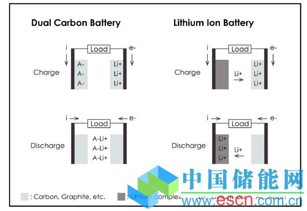 雙碳性電池和鋰離子電池對(duì)比圖