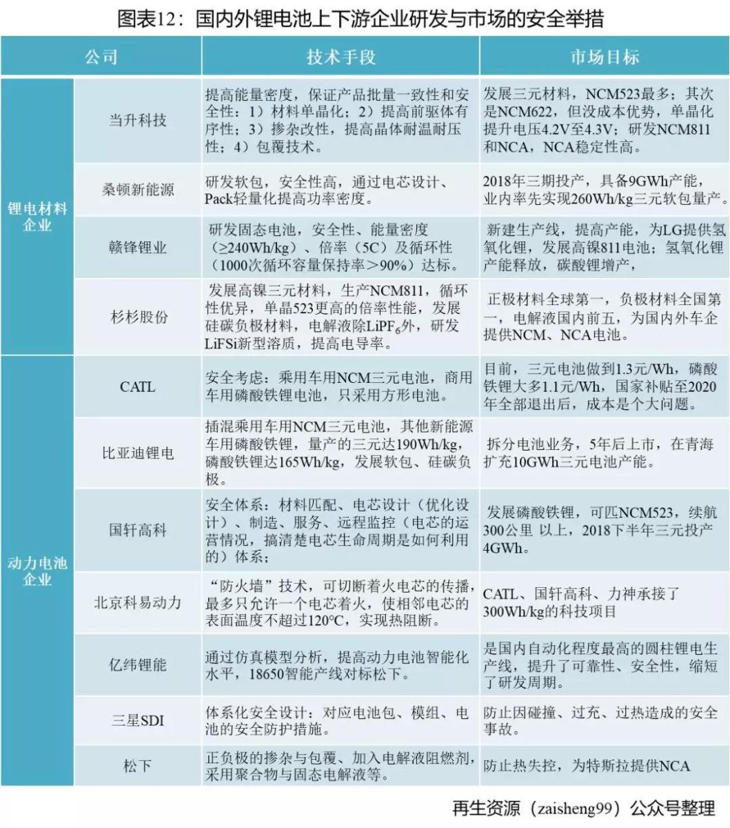 鋰電池上下游企業(yè)有關(guān)安全的技術(shù)研發(fā)對(duì)比
