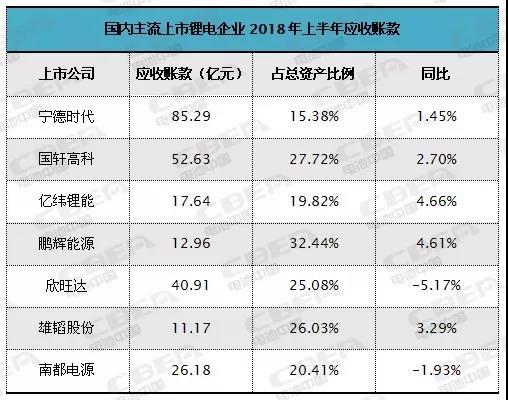 對于第二、第三梯隊的動力電池企業(yè)來說,壓力更大。如上半年以裝機量0.89GWh排名第三的國軒高科,應收賬款達到52.63億元,較去年同期末的29.98億元同比增長75.58%。國軒高科相關負責人直言,受新能源汽車補貼政策調整,整車廠商付款延遲影響明顯。盡管報告期末應收賬款的賬齡主要集中在1年內,但鑒于新能源汽車行業(yè)競爭激烈、洗牌加劇,同時受補貼政策影響較大,國軒高科在半年報中還是提醒投資者:由于應收賬款金額較大,且占資產總額的比例較高,如不能及時收回或發(fā)生壞賬,將會對公司業(yè)績造成不利影響。