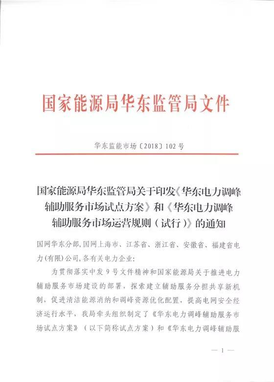 中國儲能網(wǎng)訊:9月19日,華東能監(jiān)局發(fā)布了《華東電力調峰輔助服務市場試點方案》和《華東電力調峰輔助服務市場運營規(guī)則(試行)》的通知,華東電力調峰輔助服務市場擬于2018年9月底開展模擬運行,2019年1月1日起正式運行。