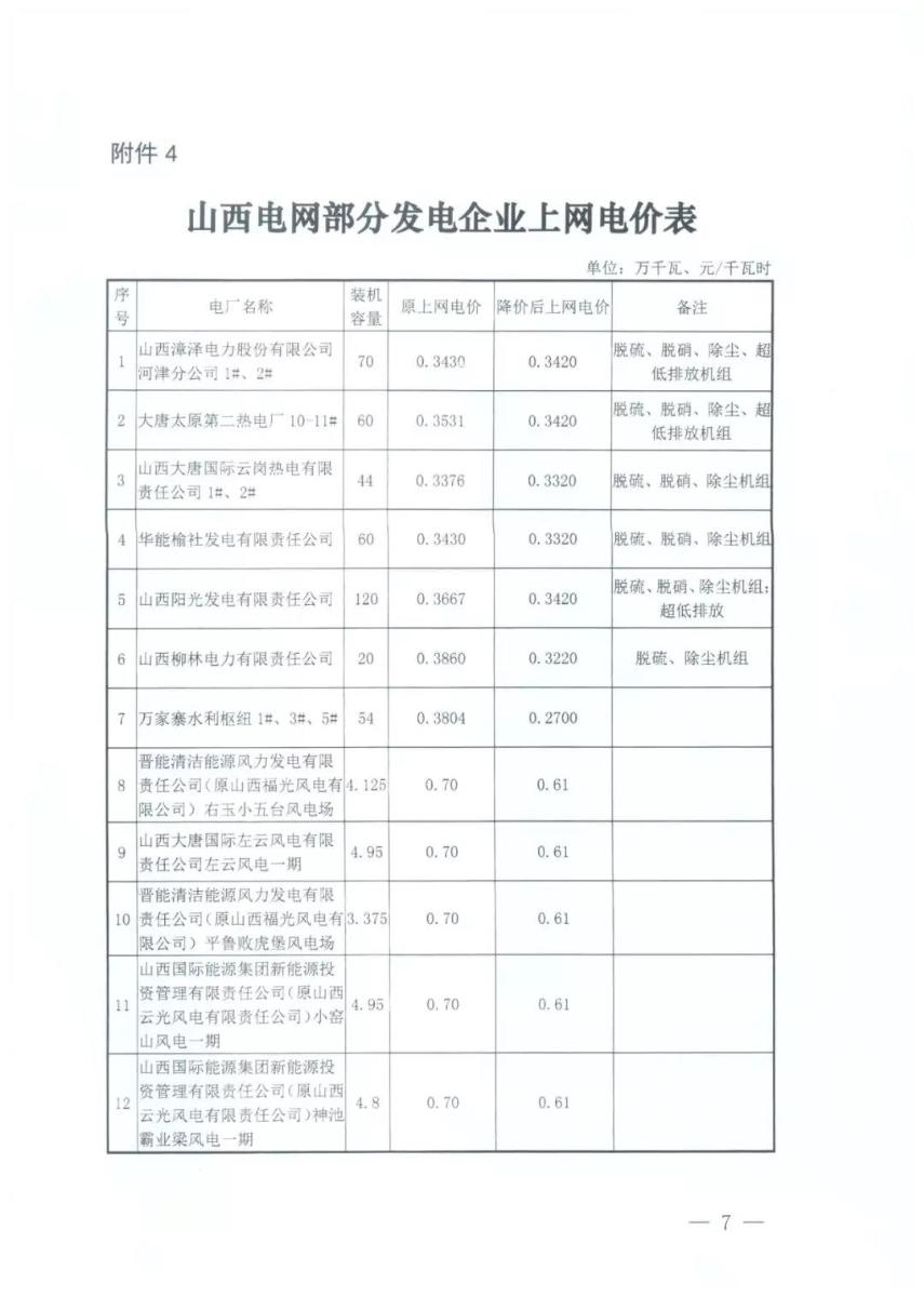 日前,山西省發(fā)改委發(fā)布了山西省第三次降電價(jià)通知,此次降電價(jià)涉及到了發(fā)電端的上網(wǎng)電價(jià)。在通知第三項(xiàng),山西省發(fā)改委提出要降低部分燃煤發(fā)電機(jī)組、水電機(jī)組、風(fēng)電機(jī)組上網(wǎng)電價(jià),詳情如下:
