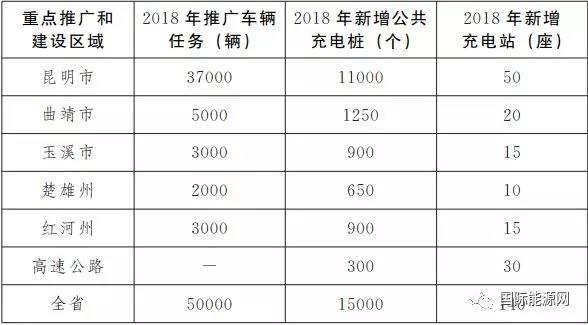 新能源汽車推廣目標。重點圍繞私人購車、政府采購、公共出行、城市物流(含郵政,下同)以及旅游等領域,在昆明市、曲靖市、玉溪市、楚雄州、紅河州等滇中城市群和重點旅游城市及景區(qū),2018年推廣5萬輛新能源汽車。其他州、市不下達推廣任務,由州、市人民政府結(jié)合實際積極推廣新能源汽車。