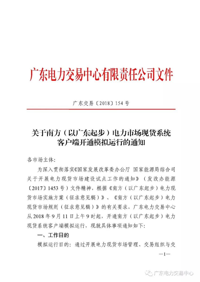 關(guān)于南方(以廣東起步)電力市場(chǎng)現(xiàn)貨系統(tǒng)客戶(hù)端開(kāi)通模擬運(yùn)行的通知